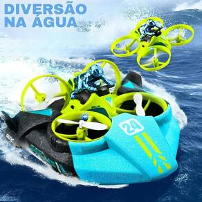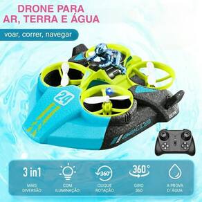 Mini drone 3 em 1 terra - água - ar 4d-v24 - quadcoptero com controle 2.4ghz 4 motores - 4drc Pequeno, leve e fácil de brincar. Modelo 4d-v24 garante qualidade e durabilidade. Desmontável, você brinca no ar, na terra e na água com o mesmo drone Design fácil de pilotar, mesmo se você nunca tiver operado um modelo antes é simples de manobrar. O motor potente ajuda o drone a decolar e se manter no ar e fazer suas manobras, sem dificuldade. Possui giroscópio inteligente com 6 induções de gravidade, ajuste de ar, design de direção diferencial do motor. Funções de seu drone: - possui 3 velocidades ajustáveis através de seu controle. Adaptável para qualquer ambiente e garantir a melhor experiência - motor escovado, de potência e qualidade - alarme de bateria fraca e função de pouso automático - a bateria possui sensor de carregamento, garantindo maior durabilidade - modo de voo use a aeronave sozinha / modo terra a aeronave combinada com o hovercraft / modo de superfície a aeronave combinada com o hovercraft - casco de espuma super-resistente. Fácil de trocar os modos de diversão. Não se limita ao ambiente interior, exterior, piscina e outras superfícies aquáticas . Destaques do produto: - controle remoto intuitivo para manobras precisas - estrutura em epp resistente e durável, ideal para qualquer aventura - design moderno que garante estabilidade e velocidade - perfeito para uso ao ar livre ou em espaços amplos internos Diversão garantida para pilotos iniciantes e experientes. Esse drone possui um controle com transmissor de rádio de 2.4 ghz, bateria interna e um carregador. Recebeu, montou e brincou você irá desfrutar de uma maravilhosa experiência de voo. Indicado para crianças a partir de 14 anos de idade. Informações técnicas - marca: 4drc - modelo: drone 4d-v24 3em1 mini com controle 2.4ghz 4 motores - material: epp resistente e durável - função: para cima / para baixo / esquerda / direita / frente / trás - controle necessita de pilhas 3 x aaa não inclusos - avião acompanha bateria 3.7v 700mah incluso - distância de controle: até 80 metros - tempo de carregamento: aproximadamente 50 minutos - tempo de voo: 12-15 minutos - dimensões: 18 cm comprimento / 9 cm altura / 18 cm largura - peso líquido: 67g / peso bruto: 370g - embalagem: 20x12x21 cm Conteúdo da caixa: - 1x corpo do drone com 4 motores - 1x bateria - 2x helice de reposição - 1x controle remoto - 1x cabo de carregamento - 1x chave de fenda - 1x manual de instruções Anatel: 03856-23-14059 Marca: Não Informado