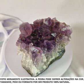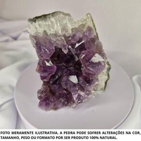 Drusa Ametista Pedra Natural Bruta 300 a 500 Gramas Proteção Drusa Ametista Pedra Natural Bruta 150 a 300 Gramas Proteção A Ametista é uma pedra natural que traz proteção ao lar, harmônia para a mente e cura para o corpo. É uma pedra com alto nível de energia vibratória por ser uma pedra com grande alcance espiritual. A Ametista tem o poder de transformar energias negativas como , tristezas e mágoas, em energias positivas. Pode ser utilizada no processo de Cura: Ativa o sistema linfático e a circulação sanguínea, combate vícios, alivia enxaquecas e a tensão. A Ametista trata a insônia e promove um sono reparador. Ela harmoniza e conecta os corpos físico, mental e emocional, ligando-os ao espiritual. Chakra: Frontal Sexto Elemento: Água Como energizar: O lítio e o manganês presentes na composição desse cristal são voláteis, por isso, ele não deve ficar exposto ao sol, pois perderá esses minerais que evaporarão. Portanto, a sua energização deve ser feita na luz do luar por no mínimo 4 horas seguidas. Feng Shui: Pode ser Utilizado como decoração na entrada da casa na função de proteção do lar contra energias negativas, na sala para motivar a concentração, memória e criatividade ou no quarto para melhorar a qualidade do sono e afastar pesadelos. Observação: Por serem pedras 100% naturais podem ter variações de coloração, tamanho e peso +/-10 gramas em relação à imagem do anúncio, entretanto, terão a mesma qualidade. Os cristais podem conter fissuras naturais, ranhuras naturais e veios naturais.