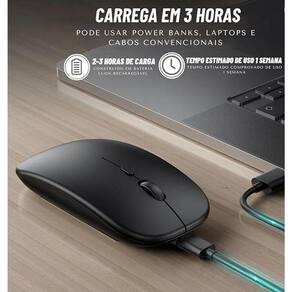 Dual mode, dual estilo: mouse slim com adaptador tipo c Nunca mais gaste dinheiro com pilhas Bateria interna recarregável via cabo usb O novo mouse sem fio, recarregável, com design luminoso e sofisticado, conta com clique silencioso, design anatômico, confortável e bateria interna recarregável via cabo usb. São 3 opções de sensibilidades dpi para que você possa ajustar a velocidade ideal do cursor no seu notebook ou computador. - bateria interna recarregável e embutida - transmissor sem fio 2.4g - mini usb - não precisa instalar qualquer driver ou programa - bateria dura até 30 dias - apenas 2 horas para recarga da bateria - leve e compacto - luzes rgb discretos e que mudam gradativamente - botão central do controle da velocidade do cursor Especificações - 4 botões - alcance de 10 metros - resolução 800, 1200, 1600 dpi - peso aproximado 70 gramas - compatível com a maioria dos sistemas: windows xp/vista/7/8/10/11 ; osx v10.4x-10.5x Itens inclusos: - 1 mouse sem fio recarregável - 1 cabo micro usb para recarga Homologação Anatel: 052051802149 Marca: Não Informado Ean: 7892907244310