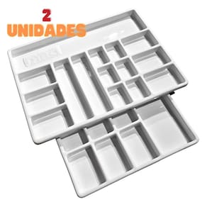 Organização eficiente para a beleza em suas mãos, DEKI MÓVEIS CLÍNICOSIdeal para esteticistas que precisam manter uma grande variedade de produtos organizados e facilmente acessíveis. Com as bandejas com gaveteiros clínicos da DEKI MÓVEIS CLÍNICOS, os profissionais da área da estética poderão aproveitar ao máximo o espaço disponível em suas bancadas, permitindo que possam trabalhar com mais agilidade e eficiência. A organização adequada dos materiais também contribui para a higiene e segurança em ambientes clínicos, proporcionando tranquilidade e conforto tanto para os profissionais quanto para seus pacientes. Adquira já as bandejas com gaveteiros clínicos da DEKI MÓVEIS CLÍNICOS e leve praticidade e organização para o seu espaço de trabalho.CARACTERÍSTICAS-15 compartimentos em tamanhos variados para acomodação;-Personalização da adaptação da organização;-Acesso aos materiais com praticidade;-Conservação dos suprimentos;-Higienização facilitada.Duas Repartições Internas para Gaveteiros de EsteticistasQUANTIDADE2 (duas) unidadesMATERIALPoliestirenoCORBrancoMEDIDAS EXTERNASLargura 38cm x Altura 2cm x Profundidade 29cmCOMPOSIÇÃODuas Repartições Internas para Gaveteiros de EsteticistasQUALIDADENossos produtos são testados e aprovados por uma equipe especializada de profissionais, passam por minuciosos testes de qualidade antes de serem embalados e enviadosGARANTIATODA a linha de produtos da DEKI MÓVEIS CLÍNICOS possuí 3 meses de garantia contra defeitos de fabricaçãoPRODUTOS A PRONTA ENTREGAA DEKI MÓVEIS CLÍNICOS, possuí todos os móveis em estoque, portanto todos os nossos produtos são a pronta entrega. Garantindo dessa maneira, o MELHOR PRODUTO no MENOR TEMPO DE ENTREGA!MAQUINÁRIO DE PONTANossa empresa utiliza máquinas modernas de última geração que asseguram um acabamento impecável em todas as linhas da DEKI MÓVEIS CLÍNICOS, dentro das normas da NR-12, que protegem nosso quadro de colaboradores e certifica a qualidade na produçãoAVISOSFique atento, as cores podem sofrer alterações dependendo do seu monitor, além da cor, pequenos detalhes e acabamentos podem não ficar evidentes na foto, por isso as imagens são meramente ilustrativas, podendo ser alterados também os modelos de rodízios, puxadores, cuba e torneira. Todos os nossos produtos são fabricados seguindo todas as normas da ANVISALIMPEZA E CUIDADOSEstrutura: Pano umedecido com água/ agente desinfetanteCuidados: Não utilizar produtos químicos ou abrasivos na limpeza. Evite batidas e o contato com objetos cortantes