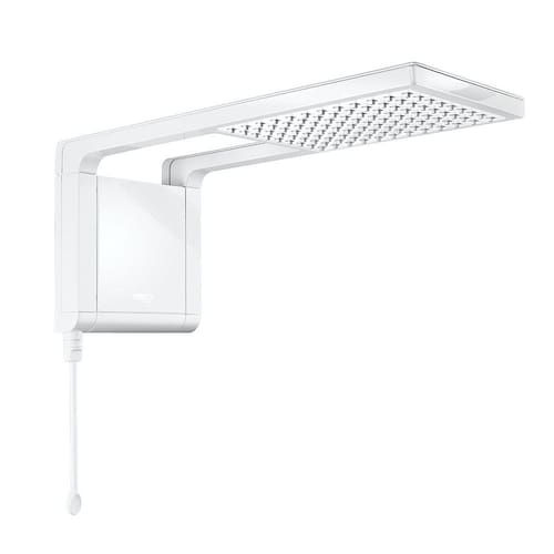Ducha Acqua Storm Ultra Lorenzetti Branco manual com design exclusivo 220V Acompanhando as tendências mundiais de arquitetura e design, a linha Acqua Ultra apresenta acabamento moderno e inovador com linhas quadradas, design compacto, ultrafino, ?Similar ao design de duchas Frias?. A Linha Acqua Ultra conta com a exclusiva Resistência Loren Ultra, a primeira resistência plana do mercado. Trata-se de um desenvolvimento com mais de cinco anos de estudos, que garante alta performance e longa duração. O chuveiro Acqua Storm Ultra traz um banho diferenciado e inesquecível. Tecnologia Press Plus - Jatos de alta performance mesmo com baixa pressão. Exclusiva resistência Loren Ultra - Longa duração em comparação as resistências comuns. Resistência de troca rápida Loren Ultra: Exclusivo cartucho que garante uma troca rápida e segura. Comando eletrônico - Permite a escolha gradual e precisa da temperatura. Haste de controle de temperaturas - Controle de temperaturas ao alcance das mãos (uso opcional). Fácil instalação: Em poucos passos a ducha é instalada ou removida. D.R.I. - Dispositivo de Regulagem de Inclinação. Ducha manual com design exclusivo. Aplicável com aquecimento solar e outros sistemas de aquecimento.