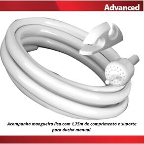 Descrição: A tecnologia de ponta da Ducha Elétrica Advanced está em todos os detalhes, desde o design sem fiação aparente, com cano incorporado, resistência tipo refil, que facilita sua troca. Tudo para garantir uma fácil instalação. A ducha é compatível com aquecedores solares, ampliando assim a sua utilização.