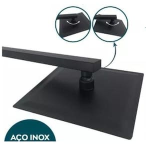 Na compra da Ducha Chuveiro Grande Black Fosco 30X30 Quadrado Banheiro, você receberá 1 ducha preta inox quadrada 30 x 30 cm, 1 braço suporte e 1 acabamento para o braço suporte de parede.