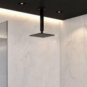 Ducha toda em aço inox na medida de 20x20cm com braço quadrado de 40cm.