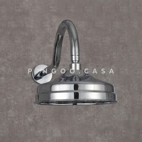 Marca: Pingoo.casa Modelo: Trombetas Cor: Prata Bitola: 1/2'' Vazão: 12 litros por minuto. Pressão Mínima de água recomendada: 3 mca. Pressão Máxima de água Recomendada: 40 mca. Dimensões: 20cm Material: Ducha em aço inoxidável 304, braço e acabamento de parede em aço inoxidável 201