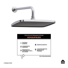 Conteúdo da embalagem: Ducha chuveiro retangular de parede Amapari Anéis de Vedação Sistema de fixação