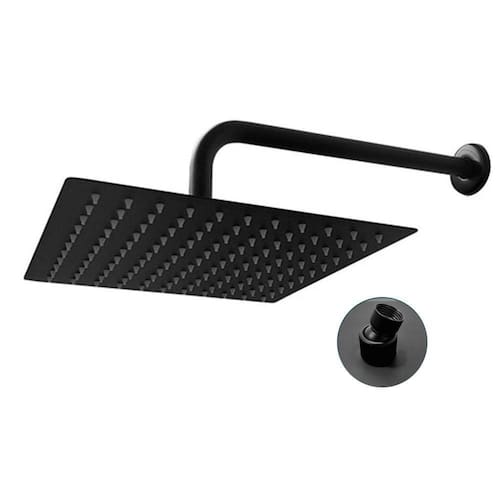 Ducha toda em aço inox preto fosco na medida de 20x20cm com braço redondo de 39cm.