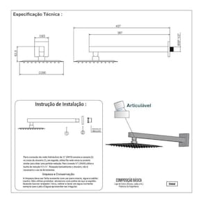Suas medidas são de 20 x 20 centímetros de largura e profundidade e espessura slim de 0,03 mm, com fino acabamento, possui crivos de saída d'água siliconados, podendo ser limpados com facilidade, levando praticidade para o seu dia-a-dia. Acompanha braço quadrado de 38 centímetros para instalação na parede, seguindo o mesmo design para combinar esteticamente, além de levar beleza e sofisticação para o seu ambiente.