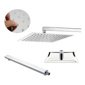 Suas medidas são de 20 x 20 centímetros de largura e profundidade e espessura slim de 0,03 mm, com fino acabamento, possui crivos de saída d'água siliconados, podendo ser limpados com facilidade, levando praticidade para o seu dia-a-dia. Acompanha braço quadrado de 38 centímetros para instalação na parede, seguindo o mesmo design para combinar esteticamente, além de levar beleza e sofisticação para o seu ambiente.
