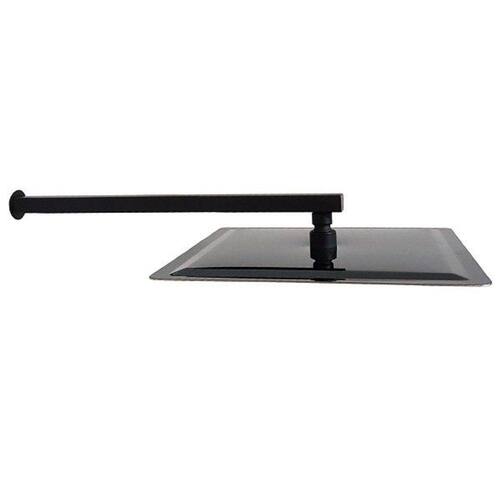 Ducha Quadrada 30x30 Inox Preto Alto Brilho Borda Fina com Braço Quadrado