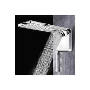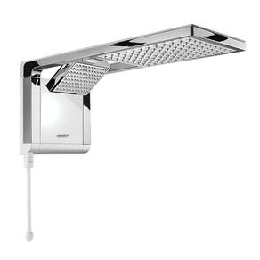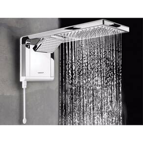 e integrando ducha e chuveiro no mesmo produto. A ducha possui jato direcionável e concentrado, enquanto o chuveiro proporciona