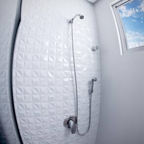 Com um comprimento de flexível de 1,80 metros, essa ducha oferece uma maior liberdade de movimento durante o banho. Além disso, acompanha um desviador, que permite alternar entre a ducha e o chuveiro com facilidade.