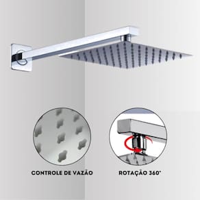 Acompanha braço de 40 cm em inox, garantindo alcance funcional e alta durabilidade. Um detalhe que combina praticidade com um acabamento impecável para o dia a dia.