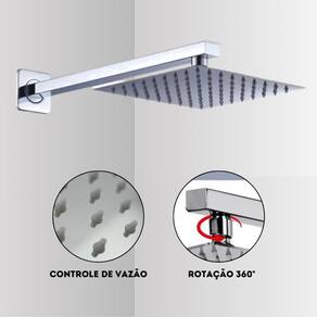 Ducha Quadrada Slim 20x20cm com Braço 40cm Inox Prata Domum - ATENÇÂO!! Esta ducha não é elétrica.