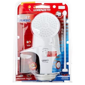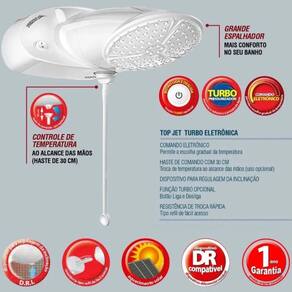 Ducha Top Jet Turbo Eletrônica 7500w 220v LorenzettiMáximo conforto e o prazer de um banho das famosas e conhecidas duchas de parede, a TOP JET TURBO conta com um grande espalhador e maior área de banho para um jato incrível.A versão TURBO tem como objetivo aumentar a pressão de água no banho por meio de pressurizador acoplado à ducha. O modelo é indicado para locais como casas térreas, sobrados e apartamentos de coberturas que geralmente possuem pouca pressão de água.Os pressurizadores são a solução mais econômica para problemas de pressão e volume de água.A Top Jet Turbo possui um botão liga/desliga do turbo, ou seja, a utilização desta função é opcional.- Pressurizador embutido: Aumenta o volume e a pressão da água.- Função Turbo Opcional: Botão liga e desliga.- Comando Eletrônico: Permite a escolha gradual da temperatura- Fácil Instalação: Resistência tipo refil, de Troca Rápida e fácil acesso.- Grande Espalhador: Mais conforto no seu banho.- Haste de comando (uso opcional): Troca de temperatura ao alcance das mãos.- D.R.I.: Dispositivo para regulagem da Inclinação.Marca: LorenzettiCódigo: 78013 Ean: 7896451859495
