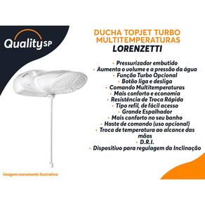 A Ducha Top Jet Turbo Multitemperaturas oferece uma experiência de banho de alta qualidade, com conforto, praticidade e soluções para ambientes com baixa pressão de água. Ideal para casas térreas, sobrados e apartamentos de cobertura, ela possui um pressurizador embutido que aumenta a pressão e o volume da água, além de outros recursos que garantem um banho incrível. Confira os detalhes: