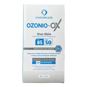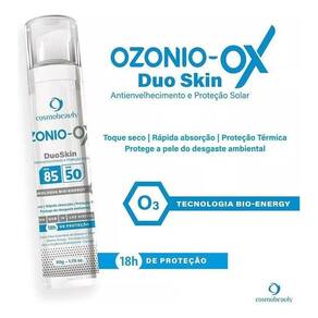 Ozonio OX Duo Skin Fps85 atua na proteção celular reduzindo o desgate ambiental que desvitaliza e causa o envelhecimento precoce. Possui toque seco e rápido absorção.Características e benefíciosAntienvelhecimento18h de ProteçãoTecnologia Bio Energy O3Proteção SolarToque SecoRápida absorçãoAtivosNano Óleo Ozonizado de GirassolOliva Dermo EnergyPró Vitamina DSilicio Orgânico BiodisponívelFucogel