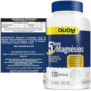 Itens do anúncio 1 unidade do produto: duom 5 magnésios - magnésio quelato + malato de magnésio + taurato de magnésio + citrato de magnésio + óxido de magnésio com 120 cápsulas - duom. Total - 120 cápsulas por frasco. Ean: 7898665752708