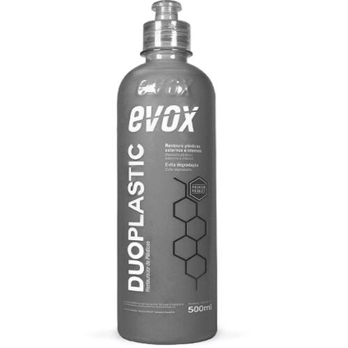 Restaurador de Plásticos Internos e ExternosDuoplastic age na restauração e renovação de superfícies plásticas: para-choques, painéis e laterais de porta. Sua formulação protege plásticos externos e internos contra a ação do tempo, evitando degradação precoce.MODO DE USO: Com a superfície limpa e seca, aplicar uma pequena quantidade do produto com auxílio de um aplicador de espuma até a completa restauração. Para acabamento seco, finalizar com toalha de microfibra. Em casos de plásticos mais ressecados, pode ser necessária dupla aplicação.INFORMAÇÕES ADICIONAIS:- Pronto uso;- Rendimento médio: até 80m² parte interna | até 40m² parte externa;- Durabilidade média: plásticos internos - até 6 meses | plásticos externos: até 60 dias;- Para manter plásticos sempre novos, realizar nova aplicação a cada 60 dias em caso de plásticos externos.