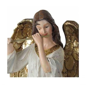 1 Estatueta Anjo Decorativo Flautista Dourado De 38cm;