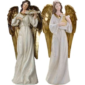 1 Estatueta Anjo Decorativo Com Harpa De 38cm;