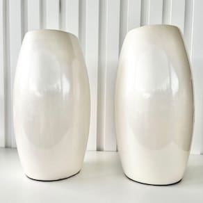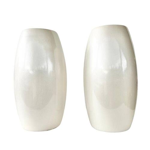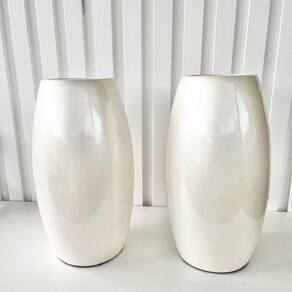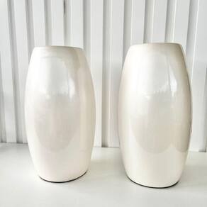 Decoração sala rack aparador dupla vaso centro de mesa médio de cerâmica moderno na cor branco pérola liso decoração luxo.