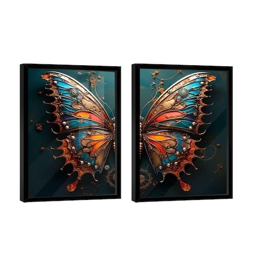 Dupla De Quadros Borboleta Dark -- Br Artes Dupla de Quadros Borboleta Dark -- BR ARTES Moldura Preta e Vidro - Pequeno 60x40 - - Qualidade Premium (padrão museu)
