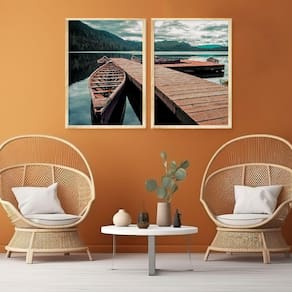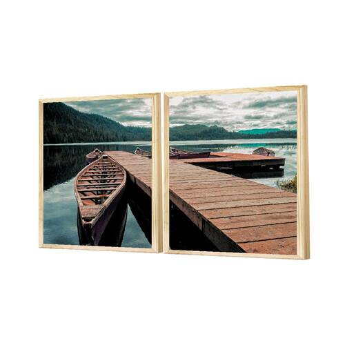 Dupla de Quadros Decorativos Natureza Paisagem Rio Barco