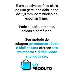 É especificamente projetada para oferecer boa adesão em metais, vidros e plásticos, como policarbonato e acrílico. Sendo um adesivo acrílico claro de uso geral nos dois lados de 1,0 mm, com núcleo de espuma firme. Pode substituir rebites, soldas e parafusos.
