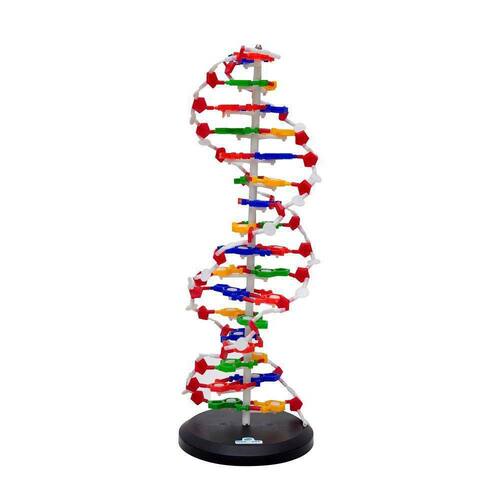 Modelo molecular de DNA; Confeccionado em PVC Composto por três espirais de hélice dupla; Constituído de ácidos nucléicos para demonstrar o pareamento de bases. O sistema DNA SD-5069 abrange componentes de formato abstrato codificado a cores para representar as bases de nitrogênio e as partes de fosfato piramidais e de açúcares pentagonais necessárias para formar um modelo helicoidal duplo de DNA; Conteúdo: Timinas; Adeninas; Guaninas; Citosinas; Deoxiriboses; Fosfatos. Acompanha:01 base plástica; 01 Manual em português, 01 Termo de garantia. embalagem: Caixa de papelão. Informação adicional: Peso 1.370 kg Dimensões 23 x 22 x 62 cm
