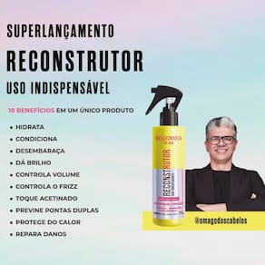 Reconstrução: após lavar os cabelos com shampoo, borrife o Reconstrutor em toda a extensão dos fios, massageando suavemente. Deixe agir 2 minutos e enxágue. Pode usar antes ou depois da máscara. Cabelos oleosos podem dispensar o uso da máscara.