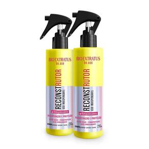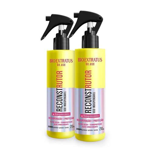 Reconstrução: após lavar os cabelos com shampoo, borrife o Reconstrutor em toda a extensão dos fios, massageando suavemente. Deixe agir 2 minutos e enxágue. Pode usar antes ou depois da máscara. Cabelos oleosos podem dispensar o uso da máscara.