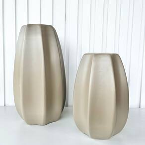 Decoração sala rack aparador dupla vaso centro de mesa grande e médio de cerâmica moderno trabalhado alto relevo na cor cáqui decoração luxo.