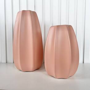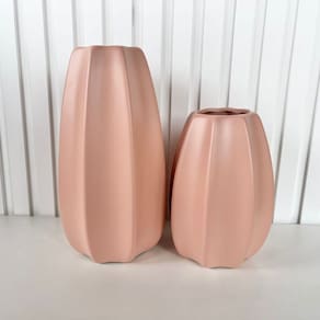 Decoração sala rack aparador dupla vaso centro de mesa grande e médio de cerâmica moderno trabalhado alto relevo na cor rosa fosco decoração luxo.
