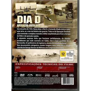 Dvd Dia D - Operação Overlord - Digipack Duplo lacrado Sinopse: Seis de junho de 1944. Nessa data, o Dia D, o Comando Aliado inicia a maior ação terra, ar e mar da história das guerras. Trata-se da Operação Overlord, uma tremenda e complexa manobra militar arquitetada para livrar a Europa de e da opressão nazista. O elemento surpresa tinha que funcionar perfeitamente. Os alemães acreditavam que tudo ocorreria em Calais, mas o local escolhido foi a Normandia, 32 quilômetros da Inglaterra, através do estreito de Dover. Este documentário obrigatório contém imagens raras, entre elas a versão colorida de George Stevens da Biblioteca do Congresso Americano. Audio: Inglês Legendas: Português