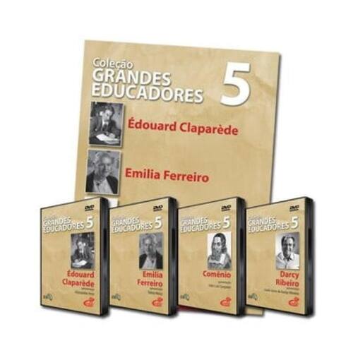 DVDS Grandes Educadores 5 com 4 DVDs da editora Cedic. Entre os grandes educadores estão, Édouard Claparde Clapard, Emilia Ferreiro, Jan Amos Komensk, Darcy Ribeiro.