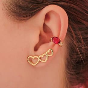 Acessório lindo, com coração e ornamentos, super delicado. O ear cuff é conhecido como um brinco que sobe pelo contorno da orelha, trazendo um ar moderno e sofisticado às produções. Essa versão se restringe a subir um pouco pela orelha, não por todo o contorno dela, por isso pode ser utilizado nas duas orelhas. Romântica e charmosa por se tratar de uma joia, essa peça vai em uma embalagem especial. Dados técnicos: altura: 2,5 cm largura: 0,8 mm