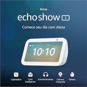 - Inclusos na caixa: Echo Show 5 3 Geração, cabo/adaptador de energia de 22 W e guia rápido para usuário.