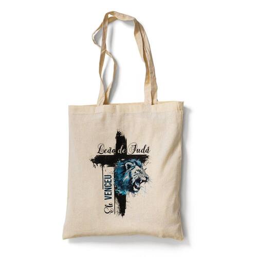 Ecobag em algodão cru Estampa: Leão de Judá Ele Venceu