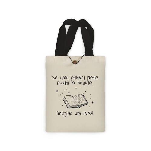 Ecobag presente pequena livro book algodão sustentável cru ou preta kindle capa presente natal dia dos professores - cru palavras que mudam