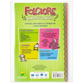 Benefícios: • Tema faz parte da prática pedagógica e está presente nas escolas, pois estimula o movimento e ajuda a desenvolver a fala (através das cantigas de roda). • Conteúdo relevante para os educadores inserirem nos planos de aula (como ponto de partida para o tema), promovendo diversas atividades lúdicas (musicalização, dança, relatos orais, cantigas de roda, etc) que estimulam a criatividade e a imaginação. • Apresenta os personagens mais conhecidos do folclore (Saci-Pererê; Bicho-Papão; Boitatá; Boto Cor-de-Rosa; Bumba meu Boi; Curupira; Iara; Lobisomem; Negrinho do Pastoreio; Mula sem Cabeça). • Ajuda a preservar a tradição e a cultura. Resenha: Histórias, Brincadeiras e Cantigas da Cultura Brasileira. . Trava-Língua . Parlenda . Advinha . Olho Vivo