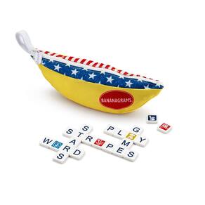Estão incluídas 8 peças especiais de liberdade que dão um toque patriótico ao desafio clássico de construção de palavras. Enquanto os jogadores correm para construir grades de palavras, eles podem usar as peças da liberdade como substitutos para qualquer letra. Tome a liberdade de se mover rapidamente porque o primeiro a usar todas as suas peças ganha! - Estrelas e listras: versão com tema patriótico do premiado jogo de palavras Bananagrams com oito peças bônus de liberdade que representam qualquer letra! - Tempo de jogo! : Jogo de tabuleiro de palavras educativo rápido e divertido que não requer lápis, papel ou tabuleiro. Os jogadores correm para terminar grades de palavras individuais. - Em movimento. Com tudo o que é necessário para brincar incluído na bolsa de banana, BANANAGRAMS Stars & Stripes é divertido para qualquer lugar! - PRESENTE: É o presente ideal para crianças (7+) e adultos. Ótimo jogo de palavras para jogos intergeracionais!