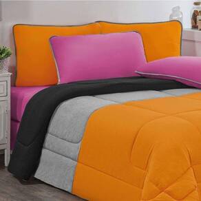 Edredom 100% Algodão Urbano 1 Peça Solteiro Laranja-mescla-preto