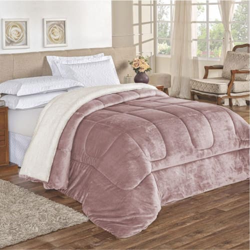 Edredom bariloche king dupla face sherpa toque lã carneiro e tecido 100% algodão - super macio -