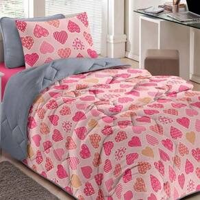 Conteúdo e Medidas: Edredom Estampada Malha Basic Coraçoes - Solteiro - 01 Peças Tamanho(1,50m x 2,20m)