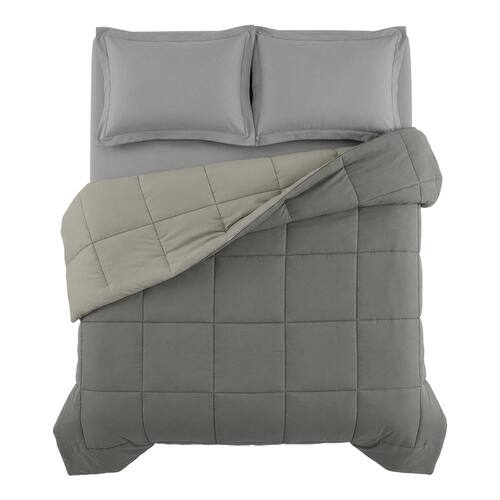 Edredom Casal Dupla Face Extra Soft Micro Percal Bf Colchões - Cinza