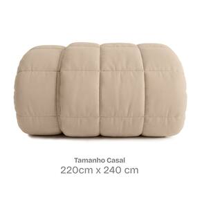 O enchimento de 200g/m² deixa a cama volumosa, imponente e sofisticada. Seu bordado com enchimento independente mantem as fibras no lugar, evitando deformacoes e prolongando a vida util, mesmo depois de muitas lavagens.