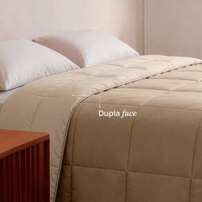 Nas laterais, possui um acabamento reforcado com vies em vivo: um cordao firme e acetinado que contorna o edredom, ajudando a estruturar e proporcionando um caimento lindo, valorizando muito a cama posta. Tudo isso com a versatilidade de ser dupla face, permitindo que voce transforme o seu quarto e componha sua cama posta com outras cores e pecas.