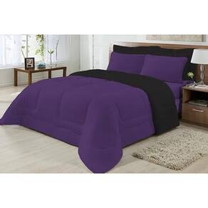Edredom Casal Malha 100% Alg Antialérgico Preto/Roxo