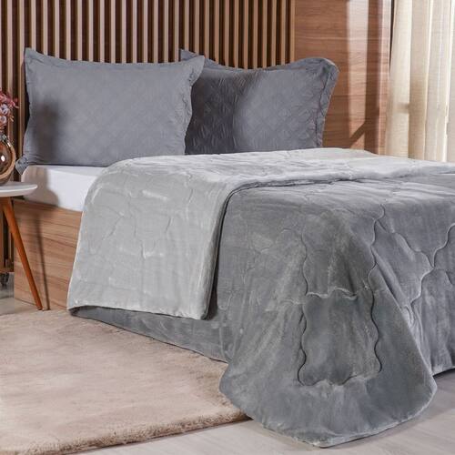 Edredom Casal Plush Bicolor Dupla Face 100% Poliéster 180x220cm Platina -
